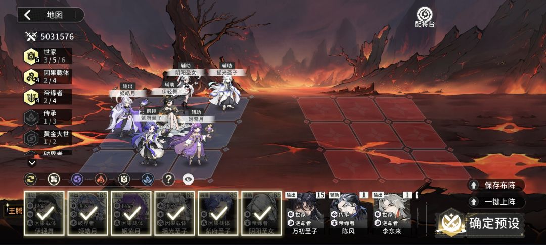 但我发现系统推荐的世家阵容羁绊吃不满,于是我微调了一下,阵容如下: