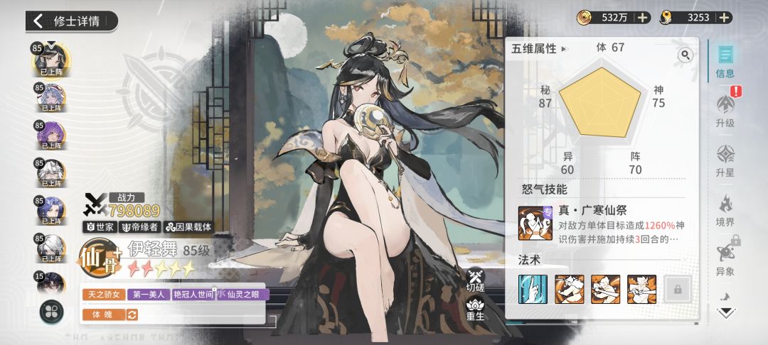 前期三个妖帝斩很容易获得,又都是秘术伤害,直接给伊轻舞就可以了