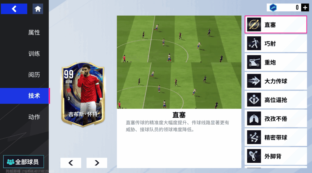 作为埋伏在大中锋身后的杀手,怀特的传射能力是帮助球队打破僵局的秘密武器,他不仅能凭借金色【直塞】技术和【大力传球】【精密带球】【外脚背】技术的加持,完成奔袭后的一脚直塞助攻队友,也能通过机敏的跑位找到空档,依靠自带的【重炮】【巧射】技术和破百的射门力量与远射能力打破僵局!除此之外,怀特在防守端投入的精力也远超常人,【高位逼抢】【孜孜不倦】技术带来的加成,让他在全身心投入进攻之余,还有余力参与到球队的防守当中,成为球队攻守转换中的枢纽!