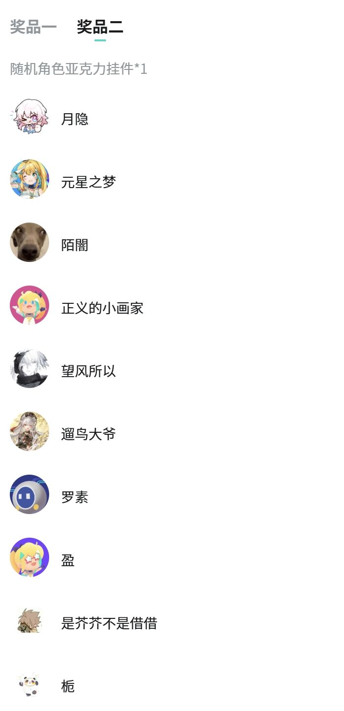 恭喜以下导演在本次活动中获得【随机角色色纸*1】、【随机角色亚克力挂件*1】~