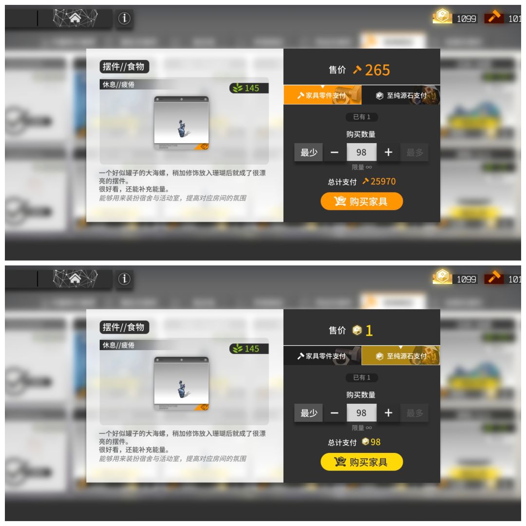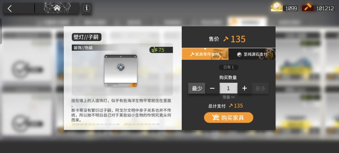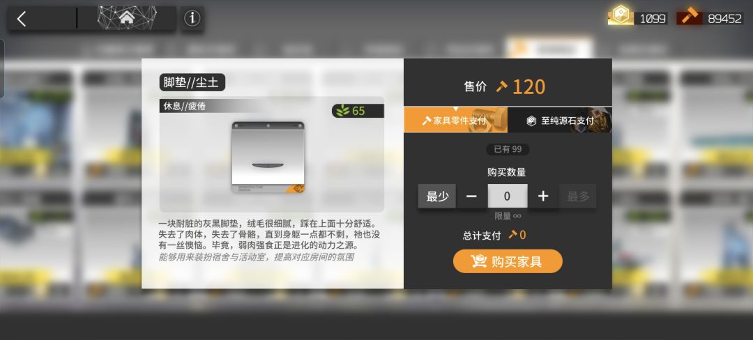 ③单件家具购买极限是一次99件,最高拥有99件,当你已经拥有99件同样的家具单品的时候只能下单无法购买。