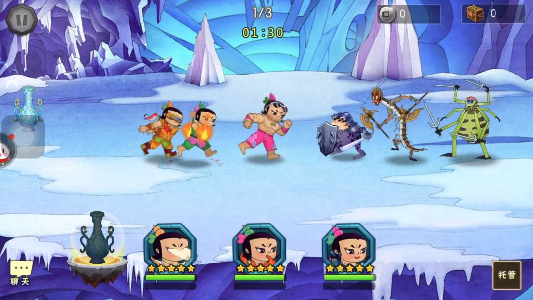 第一关:紫盾蛤蟆*1、蜈蚣精*1、绿蜘蛛精*1