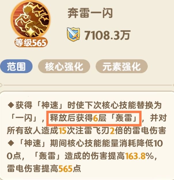 [煌雷裁决]会吞到其后续几次释放专属核心给的[轰雷],视频里至少吞了6层: