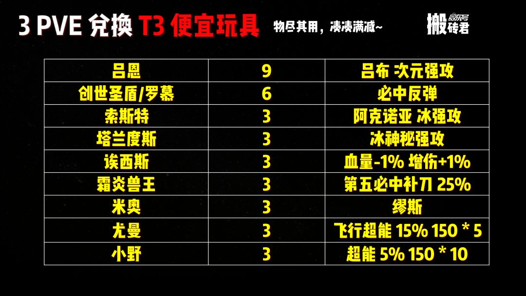 有不错的PVE效果,吕恩是最便宜的次元强攻,推荐兑换,索斯特是暗黑版阿克希亚,米奥进化后就是缪斯哦~