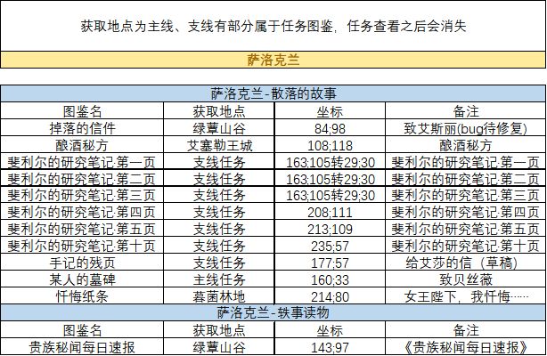 ·萨洛克兰图鉴有部分属于彩蛋任务物品,彩蛋交付后物品消失