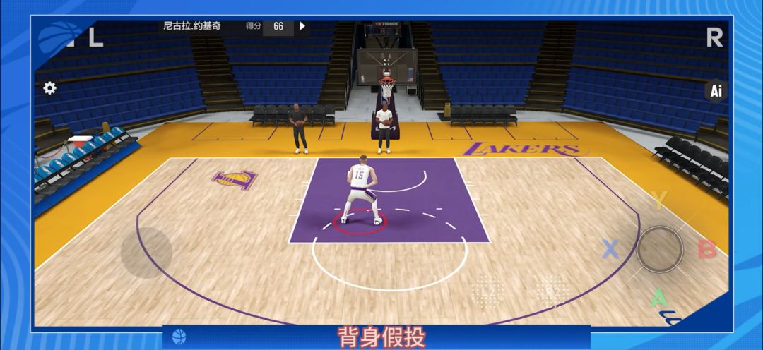 3. 背身上下假动作:按住【R】键进入背身,使用【虚拟右摇杆】做出假投动作,然后松开【R】键,并在假动作结束前再次推住【虚拟右摇杆】。这个动作需要极高的节奏感,建议用科比这样的「假动作大师」来练习。