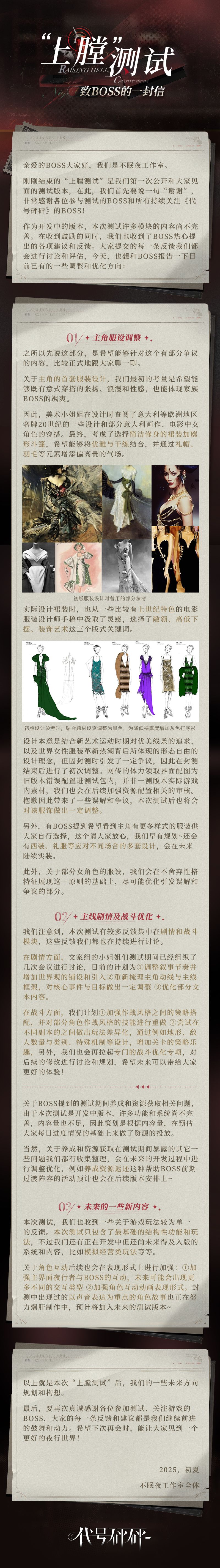 作为开发中的版本,本次测试很多模块的内容尚不完善,大家的反馈我们都在认真整理和讨论中。今天,也想和BOSS报告一下目前已有的一些调整和优化方向~希望下次再会时,能让大家见到一个更好的夜行世界!
