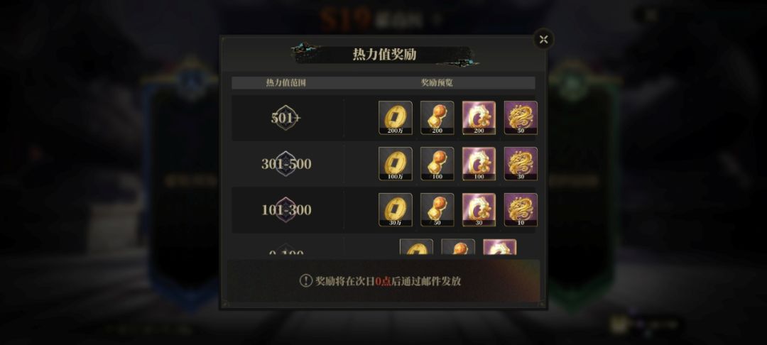 擂台奖励:天、地、人、和擂台在赛季结算时依次获得10000、8000、6000、4000的积分值。