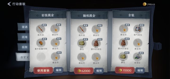 摸金符:能带多少就带多少,最多留一个位置拿回收物就行,反正没重量。