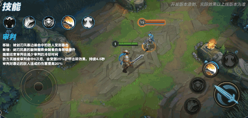在使用E(3)技能:审判的1秒后,可以再次施放。再次施放,盖伦将提前结束E(3)技能:审判,并减少E(3)技能:审判的冷却时间。