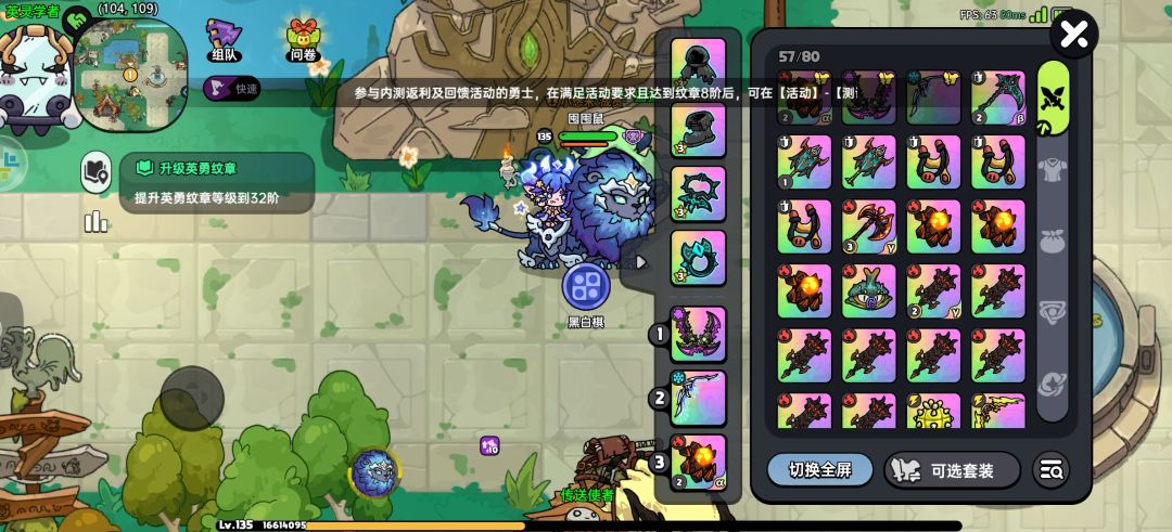 装备优先移速高,其次血量高就行了,武器选移动的虫刀和加速的风弓,有蜘蛛网的也可以上蜘蛛网,或者其他减速加速的装备都行,最后一件必上的蜉蝣。这里开区没几天,就整了这套了。全身白嫖套装还不够实用嘛?最后可以在背包留一把火炬,跑到没人的地方给自己回血。