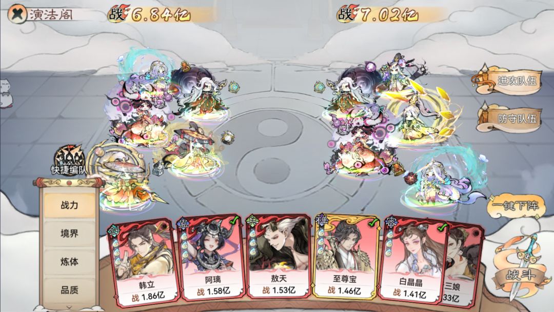 附快攻队阵容(仅更换高速画及韩立):