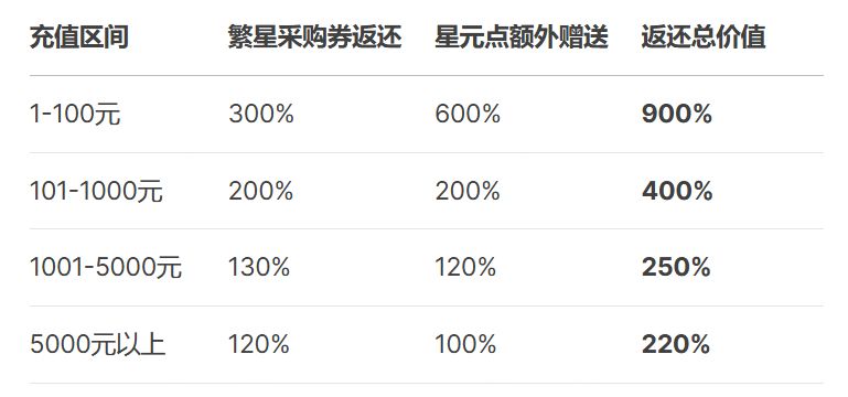 - 使用繁星采购券购买付费内容,同样会获得相应的累充活动额度及启光共鸣点数,与使用人民币购买无异。