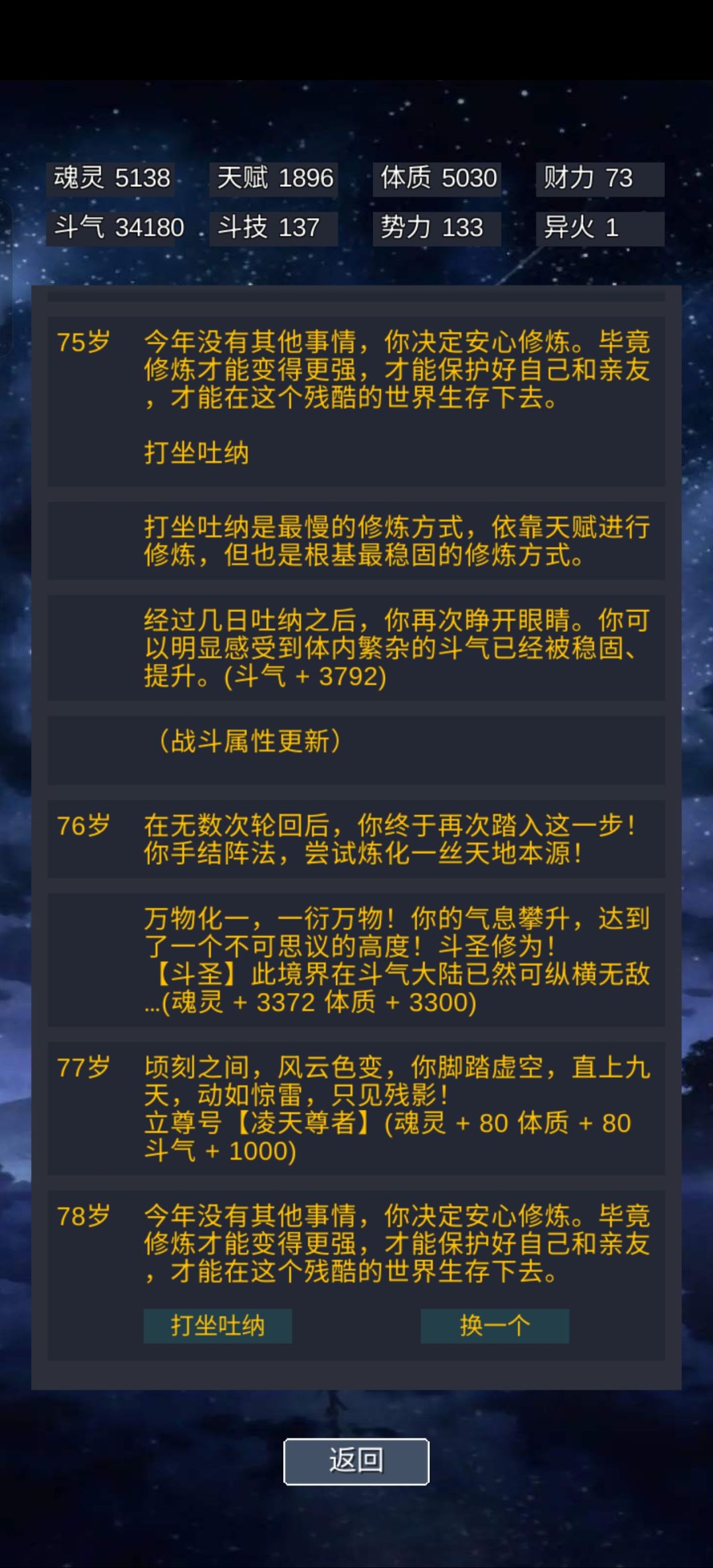 6前期日常选项选修炼吐纳,其次置换斗技,还有那个前期有个拍卖会开始前可以选点财力买个斗技