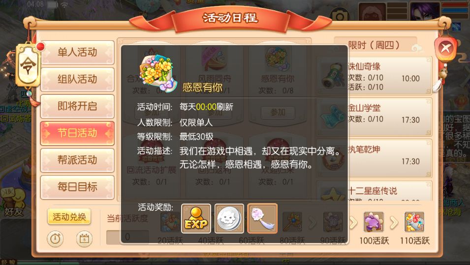 5月27日起,等级≥30级的少侠可以单人参与【感恩有你】活动,这里记录了《梦幻诛仙》世界里的许多暖心瞬间。参与可以获得合欢铃韵主题兑换道具哦~