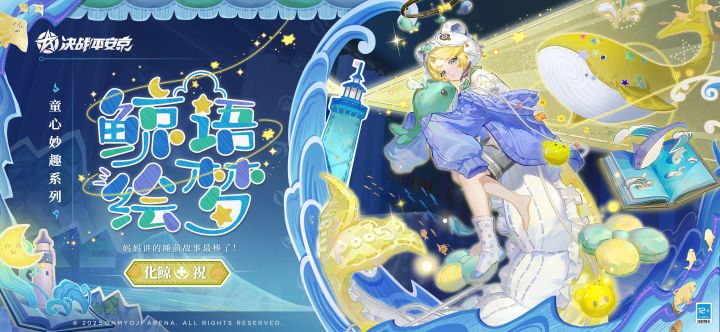 5月30日维护后-7月24日,化鲸全新童心妙趣系列限定皮肤「鲸语绘梦」将限时上架服装铺,售价96皮肤券,首周享限时8.8折优惠!同时,专属定制按键[定制按键·鲸语绘梦]将同步上架[商城]-[杂货铺],售价148勾玉,请勿错过哦~
