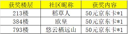 总回帖人数超过200名,所有回帖玩家中随机抽取2名玩家赠送一张价值50元京东购物卡,若层数达到588层将增加一次奖品随机抽取发放,合计将赠送3张50元京东购物卡。