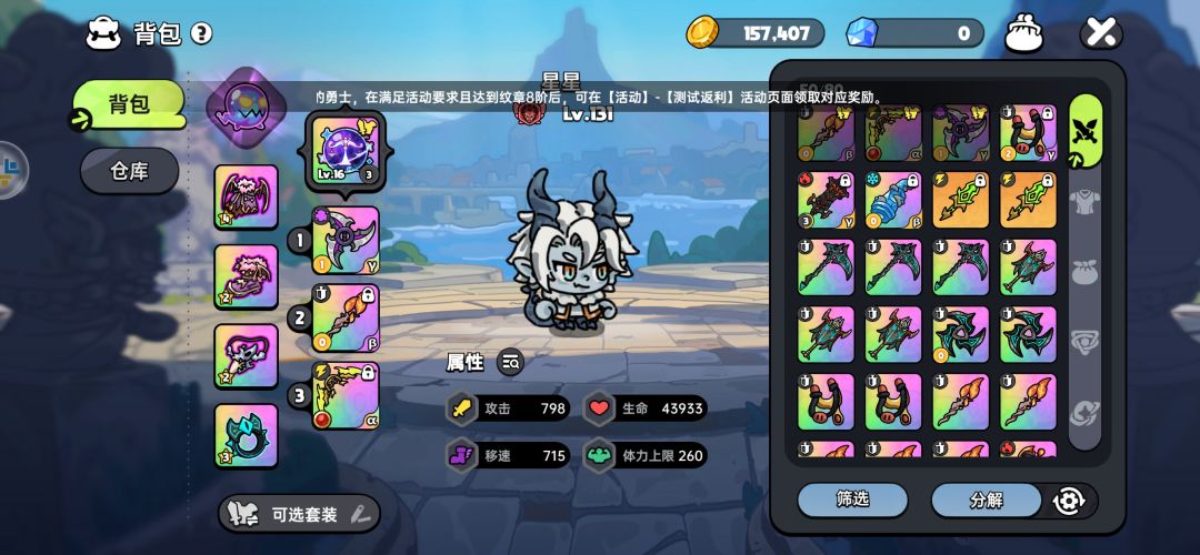0氪玩家,装备都是很基础的装备,我的蝙蝠套装也没有和大伙一样去刷,我是直接丢钓鱼🎣的,然后现在衣服也4⭐了,英雄选小龙人。