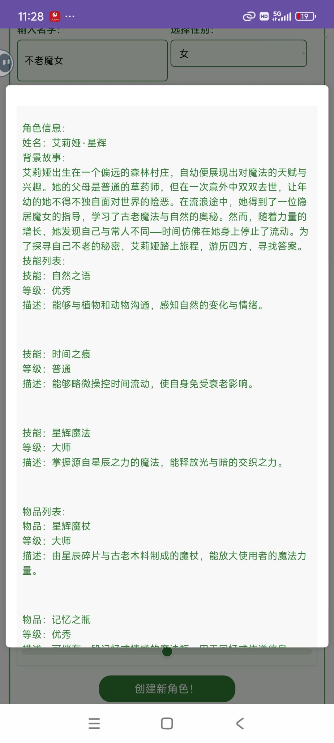 顺便一提,创建角色名称的时候还可以加前缀,从而一定程度上控制创建的人物的背景故事和能力,比如图1,其他三个选项我选的全是无,甚至属性点也没加,结果直接出了图2,再比如说图3和图4,生成的故事背景是明显按我设置的称号来的,当然想自己选职业的话也行,就像我的图五和图六。就是可惜输入名字是有上限的,目前40个字