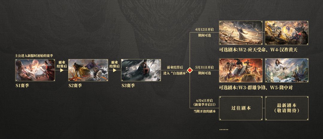 A2:主公如下图所示,按顺序线性体验S1→S2→S3赛季以后,开启自选剧本: