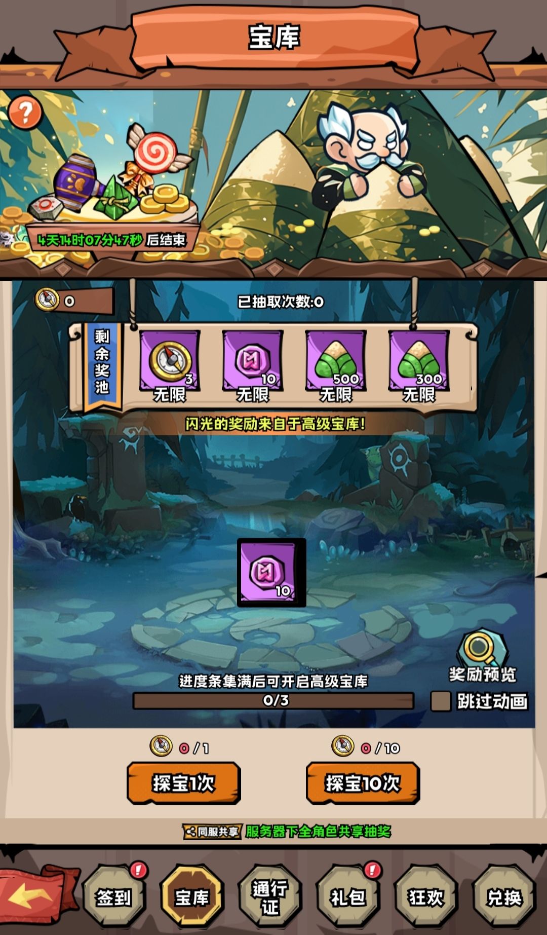 端午活动期间,神秘宝库补充新奖励后再次开启!英雄可凭借获得的指南针活动道具探索宝库,开启神秘宝藏!