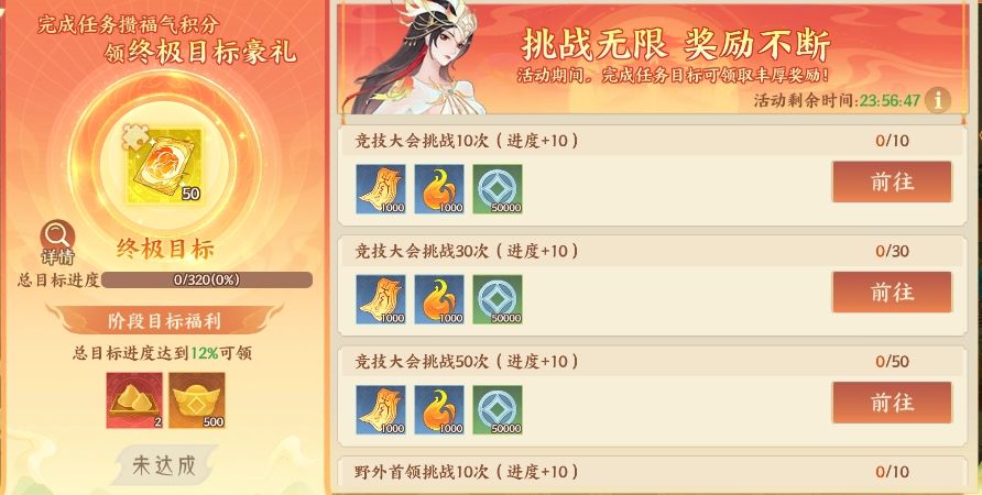 2.任务福利——日常的挑战次数任务,完成目标即可获取奖励,同时还能增加大奖进度。