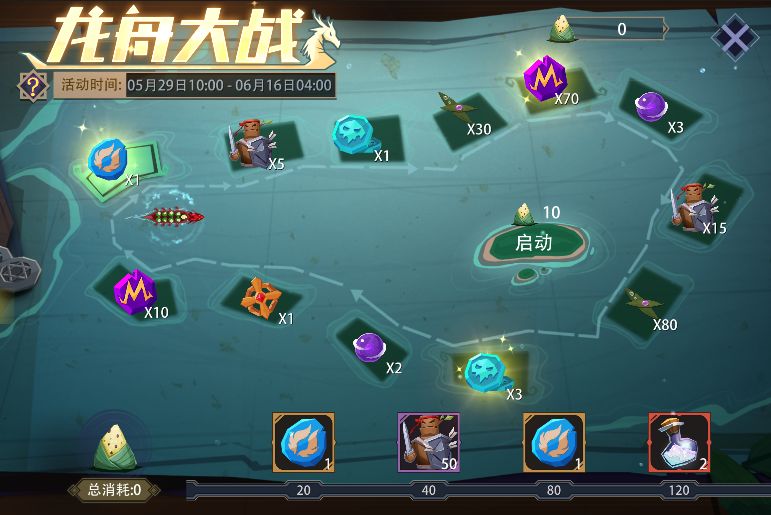 活动内容:活动期间,可消耗固定数量的“粽子”来启动游戏,获得奖励。每日无次数限制。累计消耗“粽子”达到下方进度条所示数量,还能领取额外奖励。