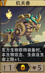 机关衍兽:(0费)从手中选择1张生物装备卡,衍生[机关兽]并装备该卡,需额外支付该卡的费用。(冷却:无)