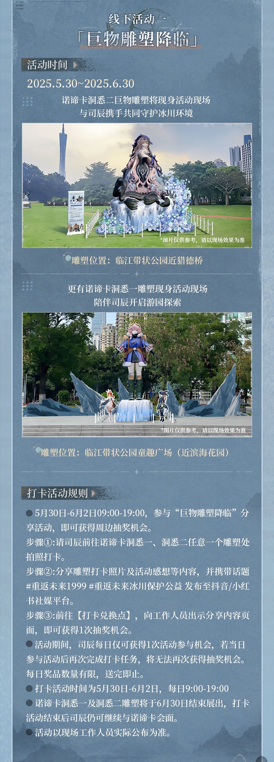 线下活动一:巨物雕塑降临参与打卡拍照分享活动,即可获得周边抽奖机会