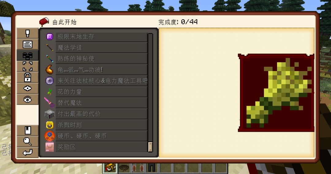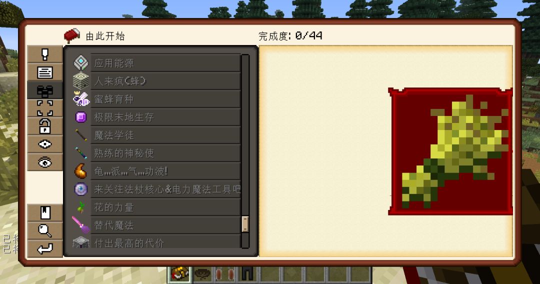 本整合包内含超过 3000 个任务,这些任务将引导你轻松度过这个包罗万象,应有尽有的以格雷科技为主的科技线。这些任务将告诉你一步步发展的流程,有了它,你不必频繁的查看 NEI,因为你只要点击任务书中的物品,由 定制版 NEI 显示的配方将自动弹出,更不必频繁的寻找教程了,是不是很方便?