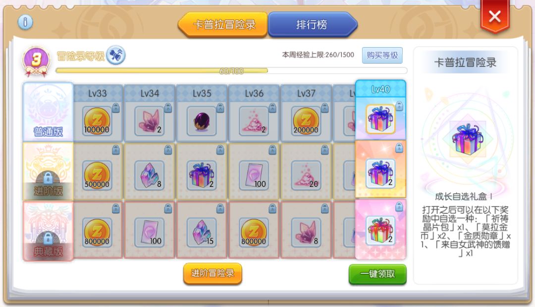 ▸ 进阶冒险录价值整体提升50%~200%,加量不加价!