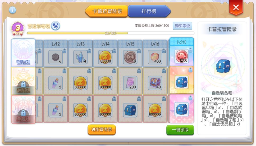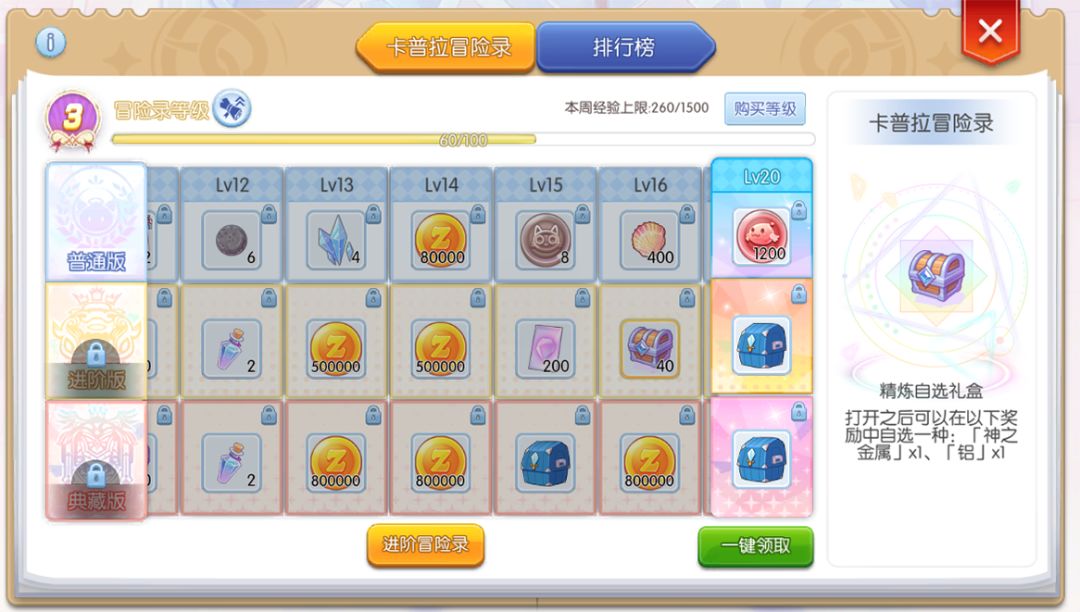 ▸进阶版新增「卡普拉进阶礼盒」:概率解锁精炼+15头饰券。(欧皇摸奖必备)