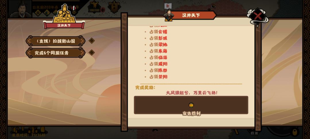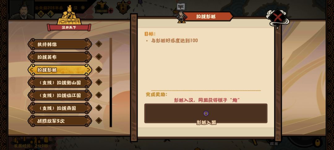 开局拜访一下彭越和韩信、英布把好感拉到100,然后在同盟颁布灭国方略。这样韩信灭其他国家可以获得印。