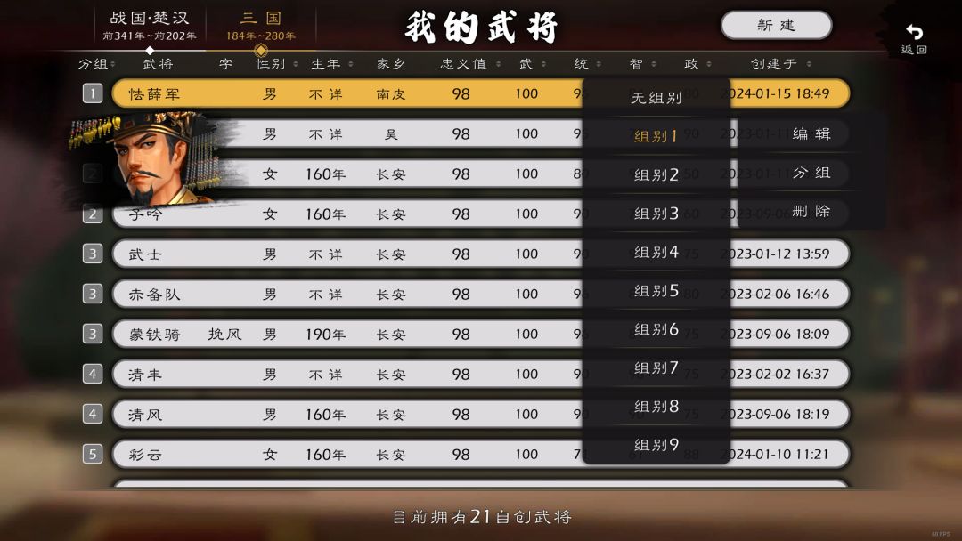 1、全新加入自创武将分组功能;