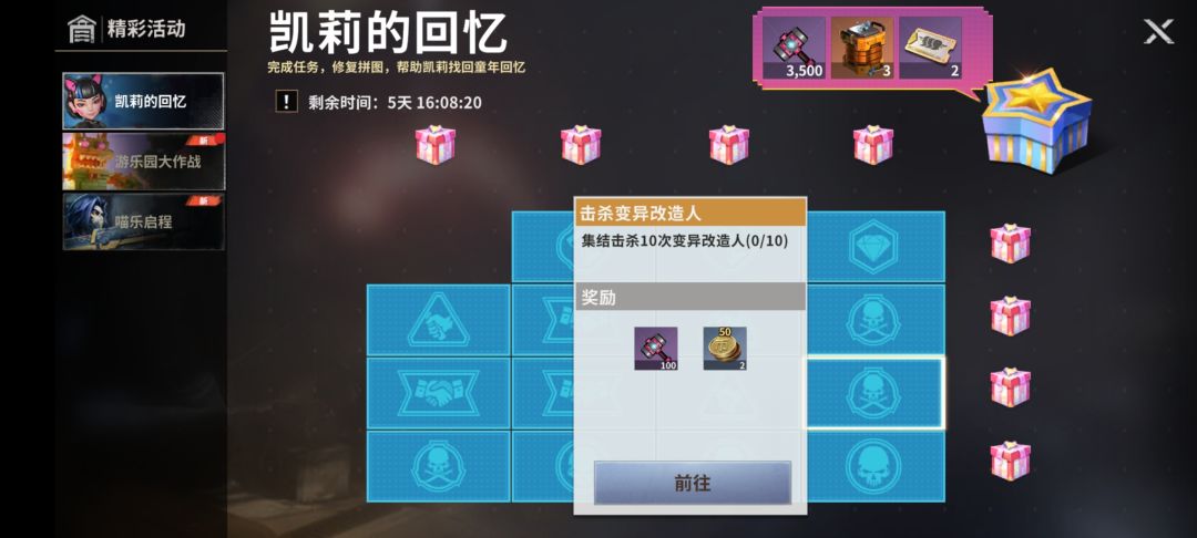 活动持续七天,完成16个任务可领取全部奖励。合计7500乐园之锤+3个电磁增压器+2张阵营卡。