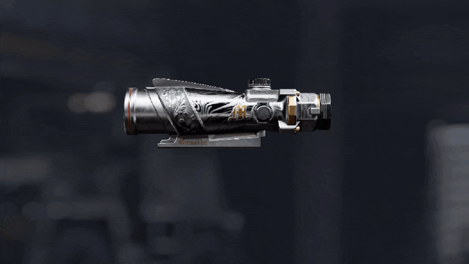 以银白钢铁为基底,尽显冷峻工业质感。枪身上的精致浮雕,勾勒出独特的艺术美感。枪托处的暗红色纹路,似钢铁熔铸时的炽烈火焰,跃动不息。