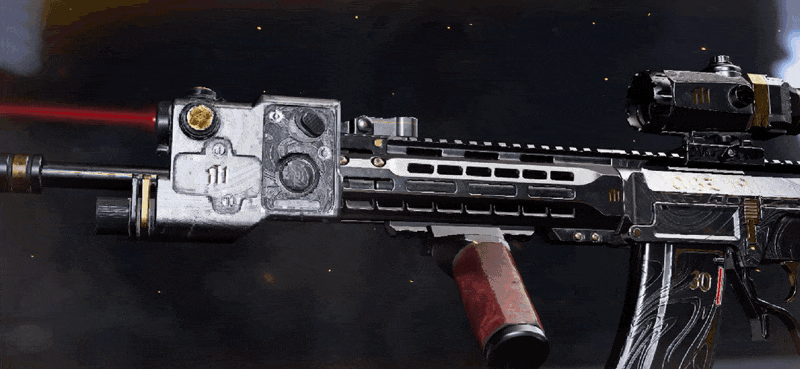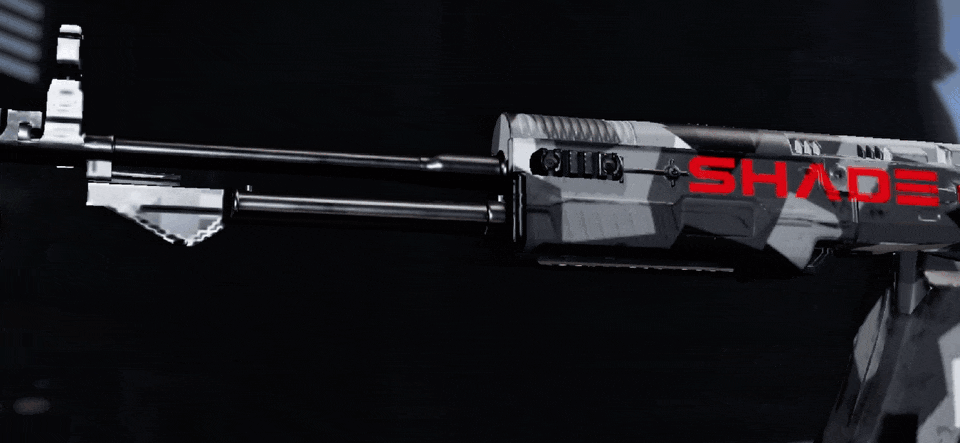 「阴影·AN94」以黑灰白为主基调,侧方“SHADE”红色标识格外亮眼,配合枪口处红色涂层,当暗红枪口在夜幕中亮起,那抹猩红即是死神降临的预告。