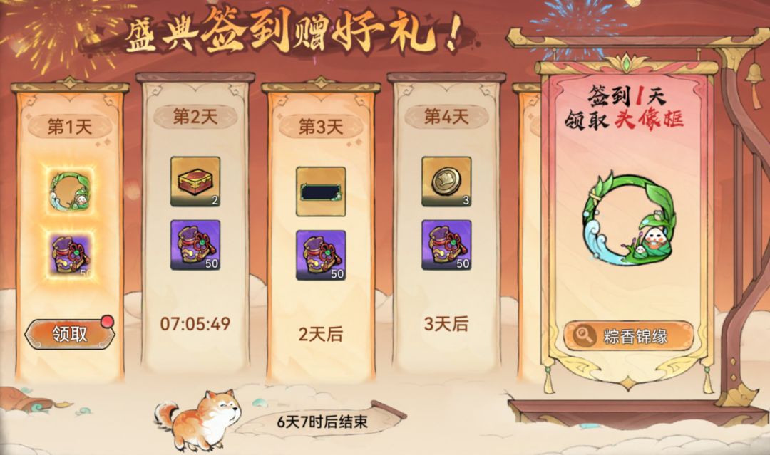 活动期间,祖师完成签到任务即可获得粽香锦缘装扮、星尘石英、许愿币等道具奖励。