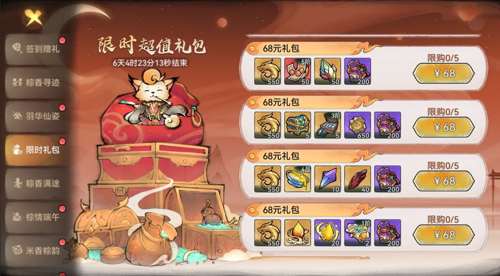 另外,猫猫商人在活动期间也上架了不少优惠礼包,并且祖师每日都可前往获取一份无偿相赠礼包,感兴趣的祖师不要错过哦~