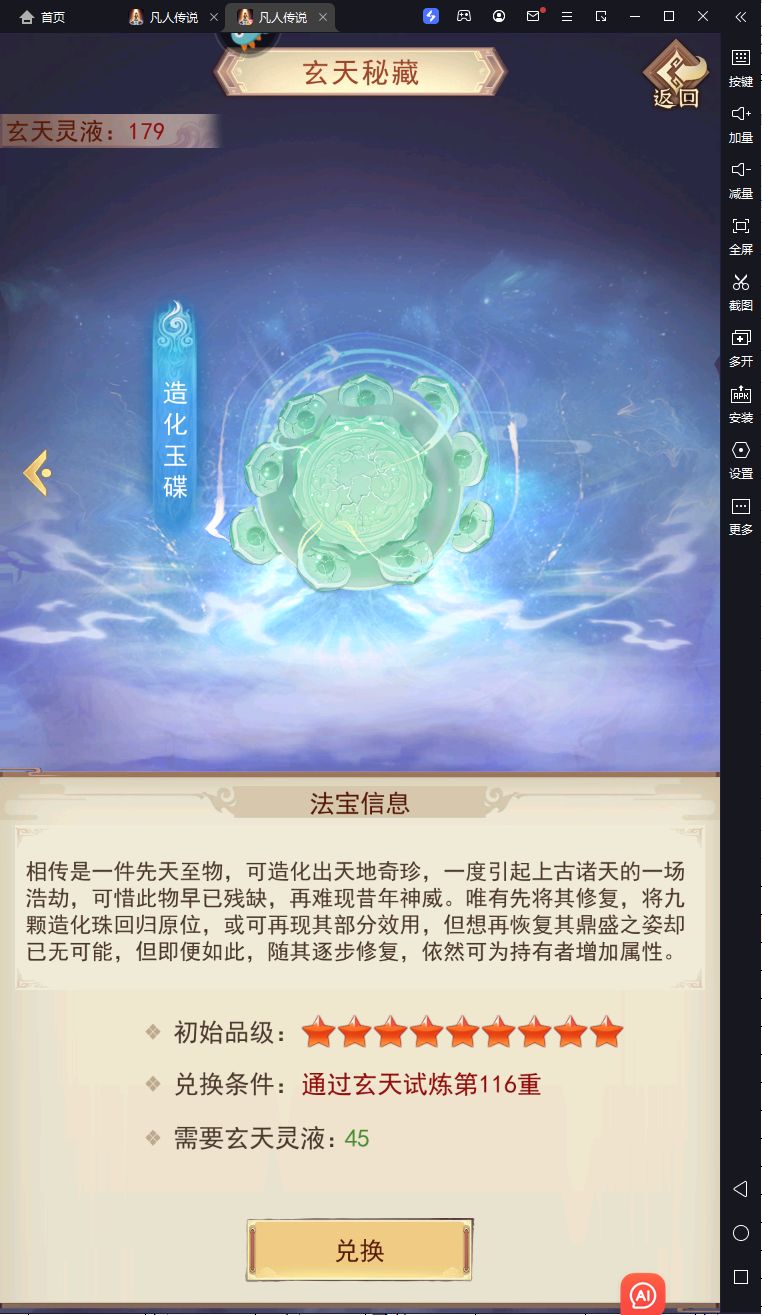 - 兑换:【九天神藏图】、【造化玉蝶】、【万妖图】、【生死簿】