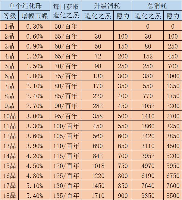 - 满级效果:提升24125攻击 / 24125防御 / 241250生命(实际属性将受到造化珠及《九天造化灵引溯源诀》的额外增幅)