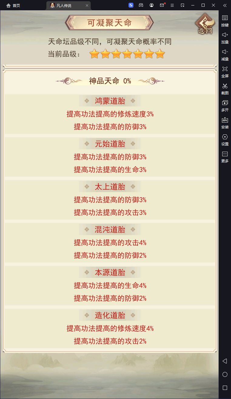 - 升级规划:【天命坛】不使用灵液升级,需每日通过“气运凝聚”提升等级