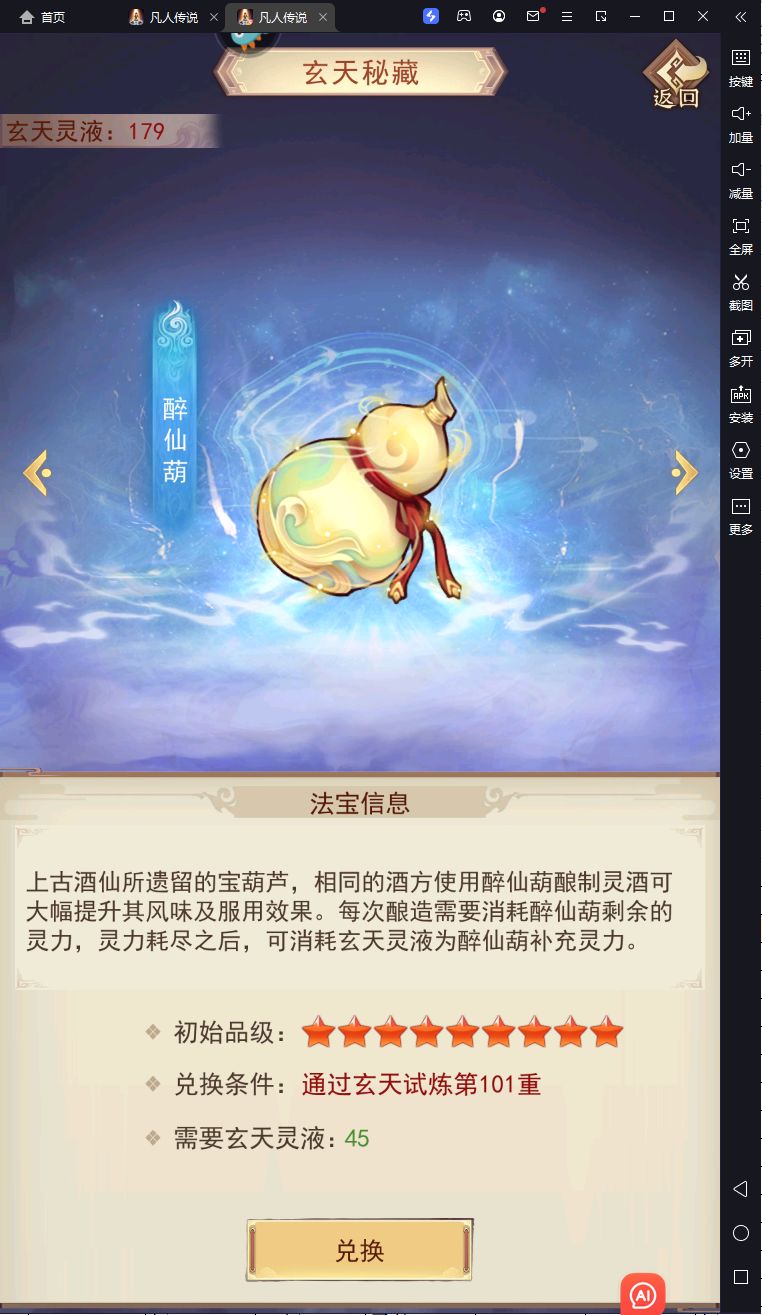 - 兑换: 【醉仙葫】;若背包格子不足,可考虑兑换【万妖图】