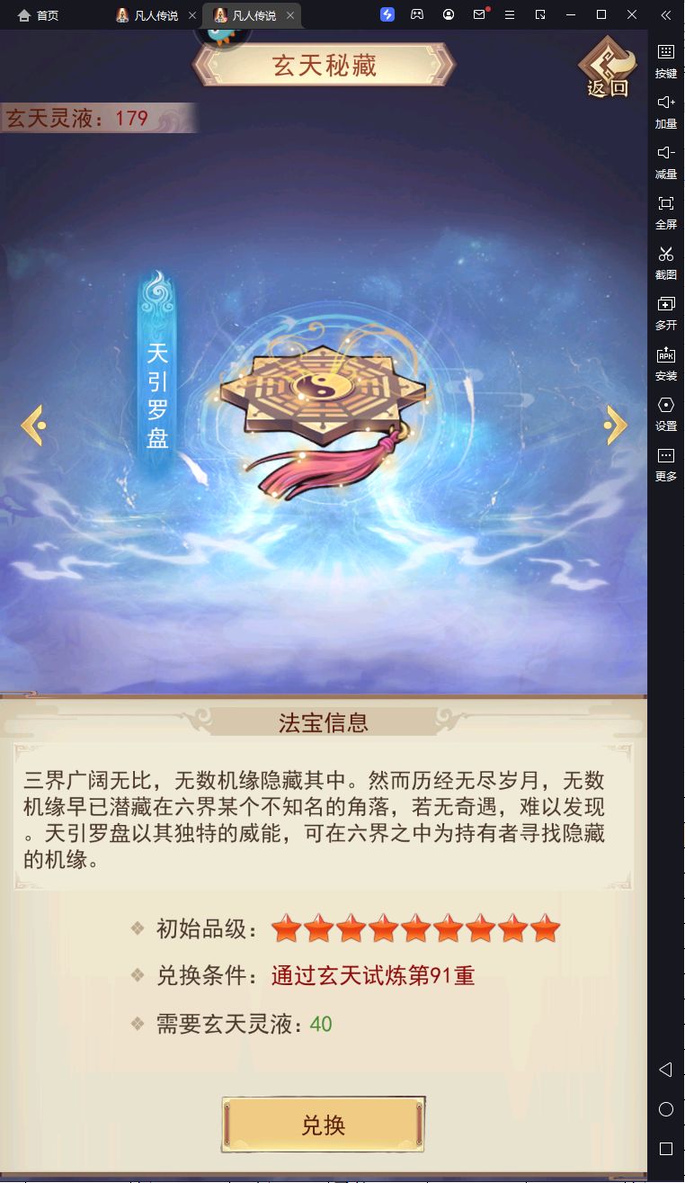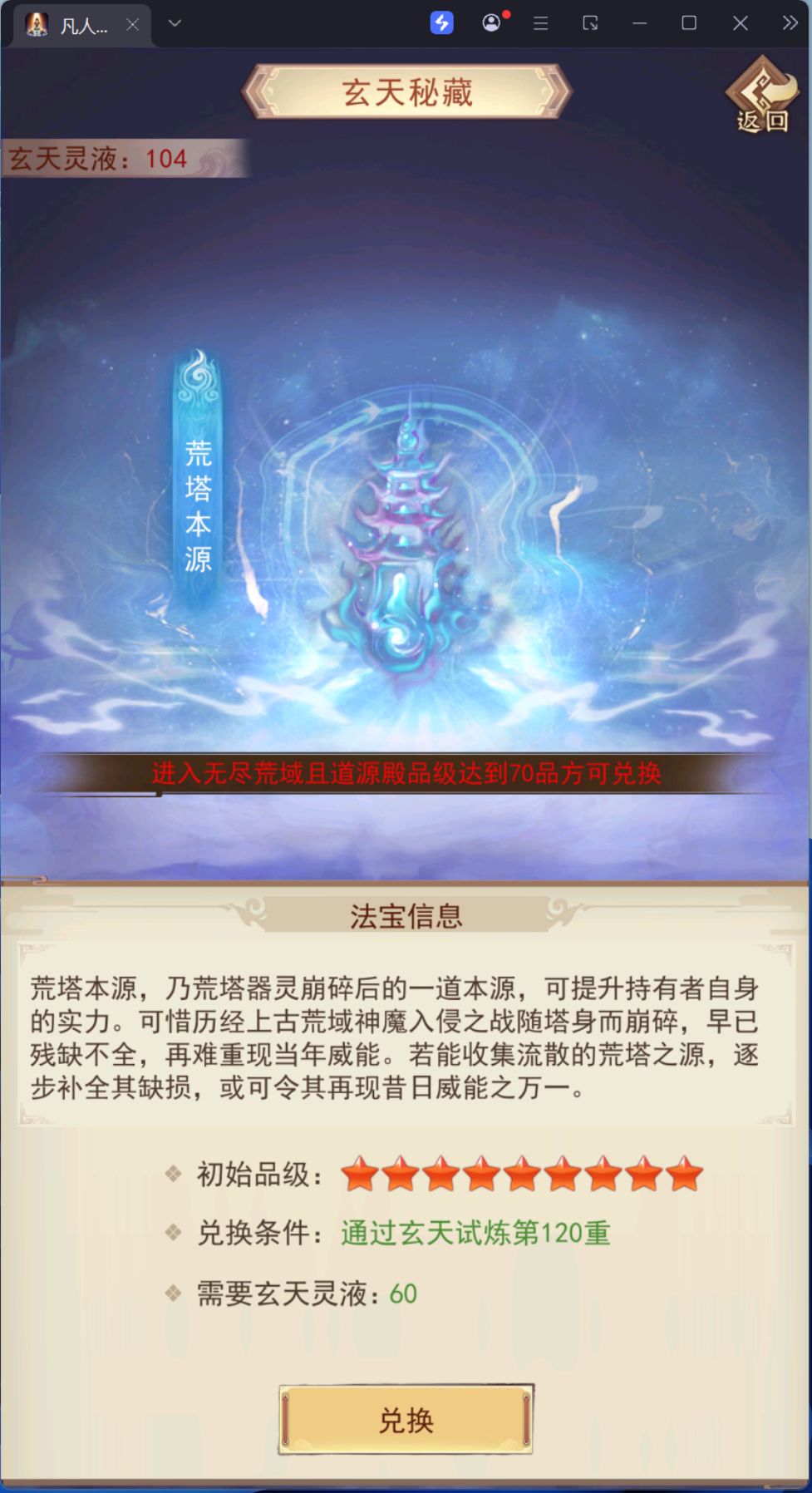 - 兑换要求:大罗1阶【消耗40灵液】且需进入九天十地