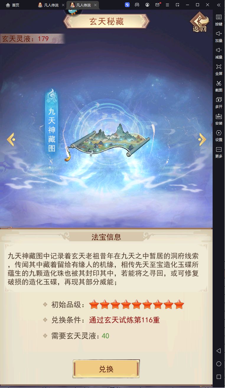 - 兑换要求:大罗1阶【消耗40灵液】且需兑换九天神藏图