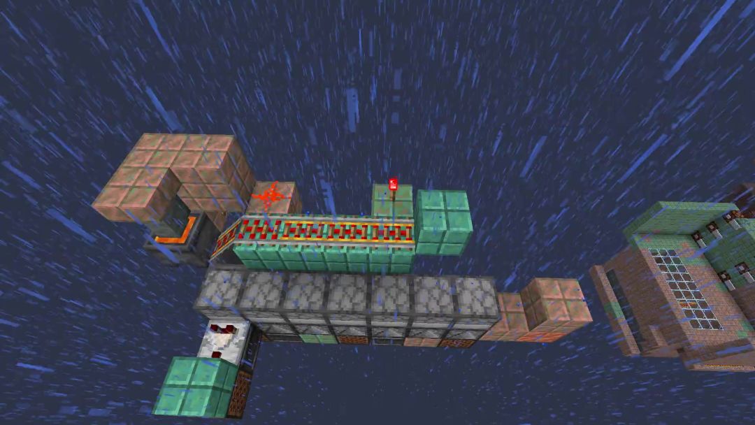 转化平台的避雷针与平台底部的高度差为3格,苦力怕被雷击3次会死亡(后续会调整高度,避免苦力怕在后续运输被骷髅直接射死)