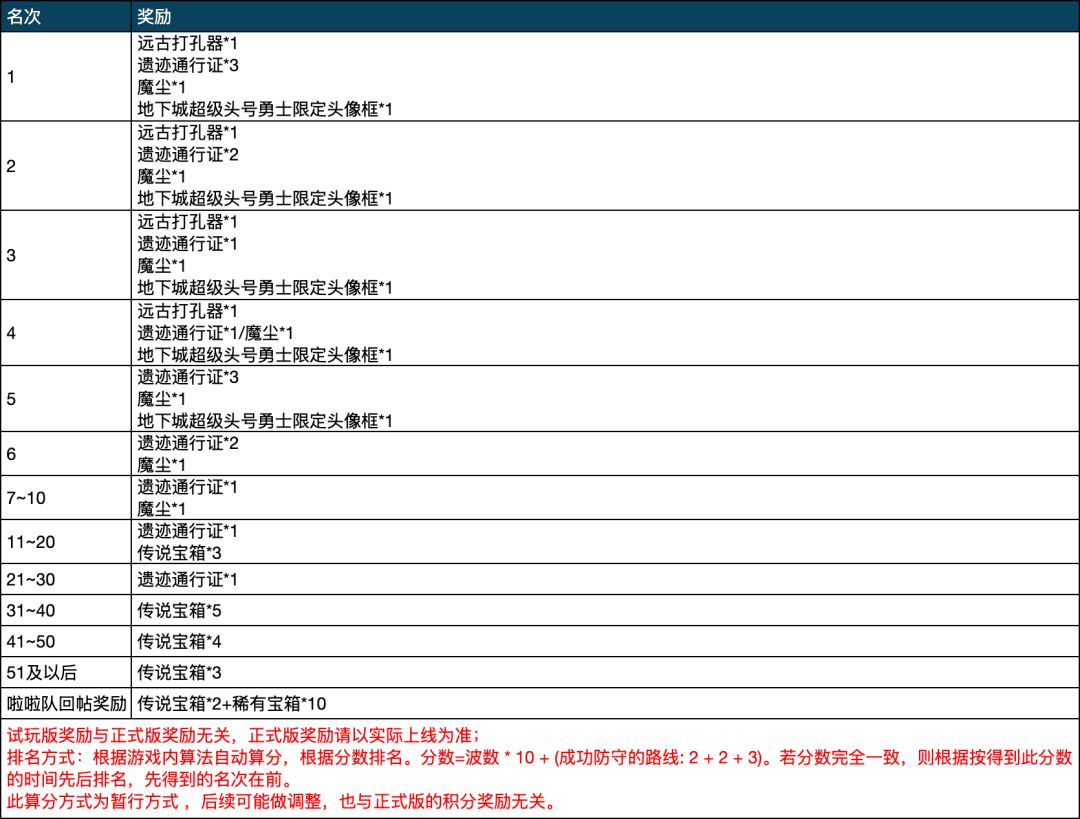 特别说明:试玩版过后,制作组可能根据情况对地下城做出一定调整,正式版请以实际上线为准。