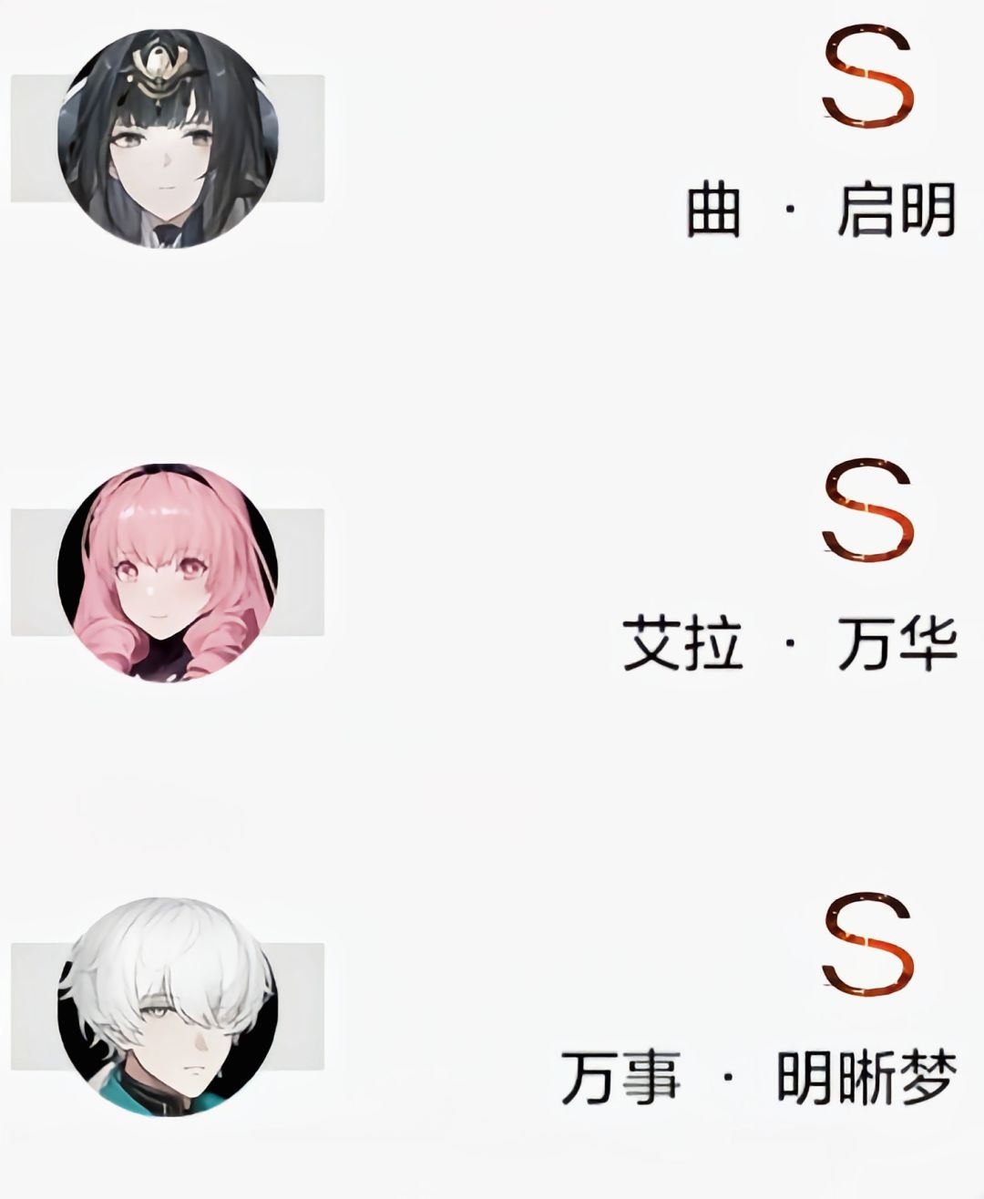 ❄ 冰队:曲·启明+ 万事+ 艾拉,有俩可以白嫖。