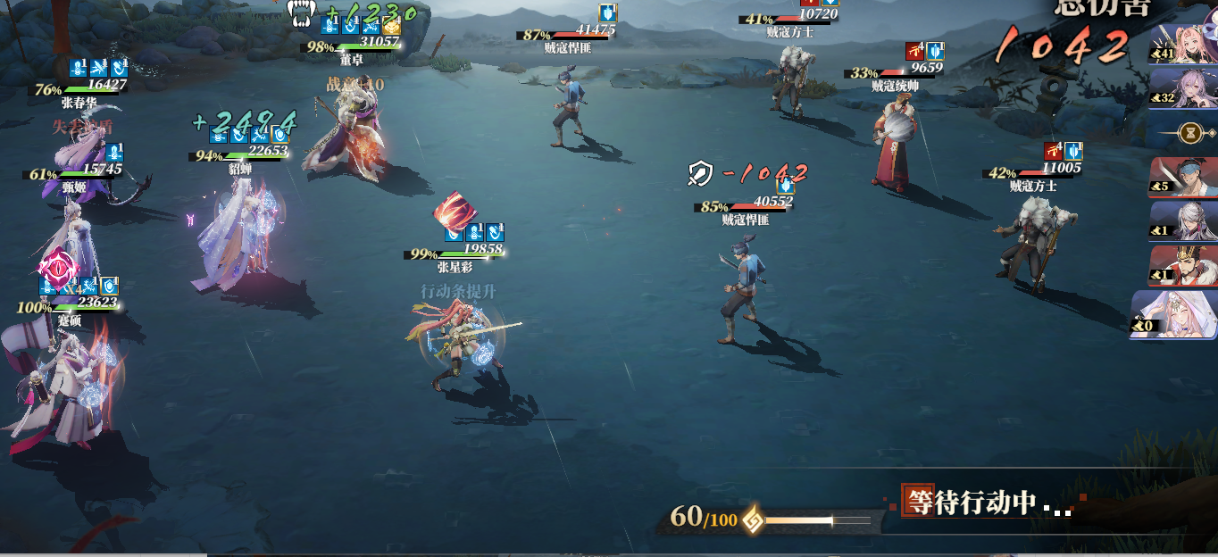 然后香香和春华优先收割敌方后排,先集火带走贼寇统帅,然后注意驱散气绝术即可。