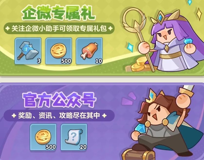 点击主界面右上角【关注】按钮,关注官方公众号、添加企微助手,领取礼包码,不要浪费额外资源~